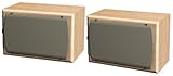 - Pair of beech-colored, 8-inch bookshelf speakers